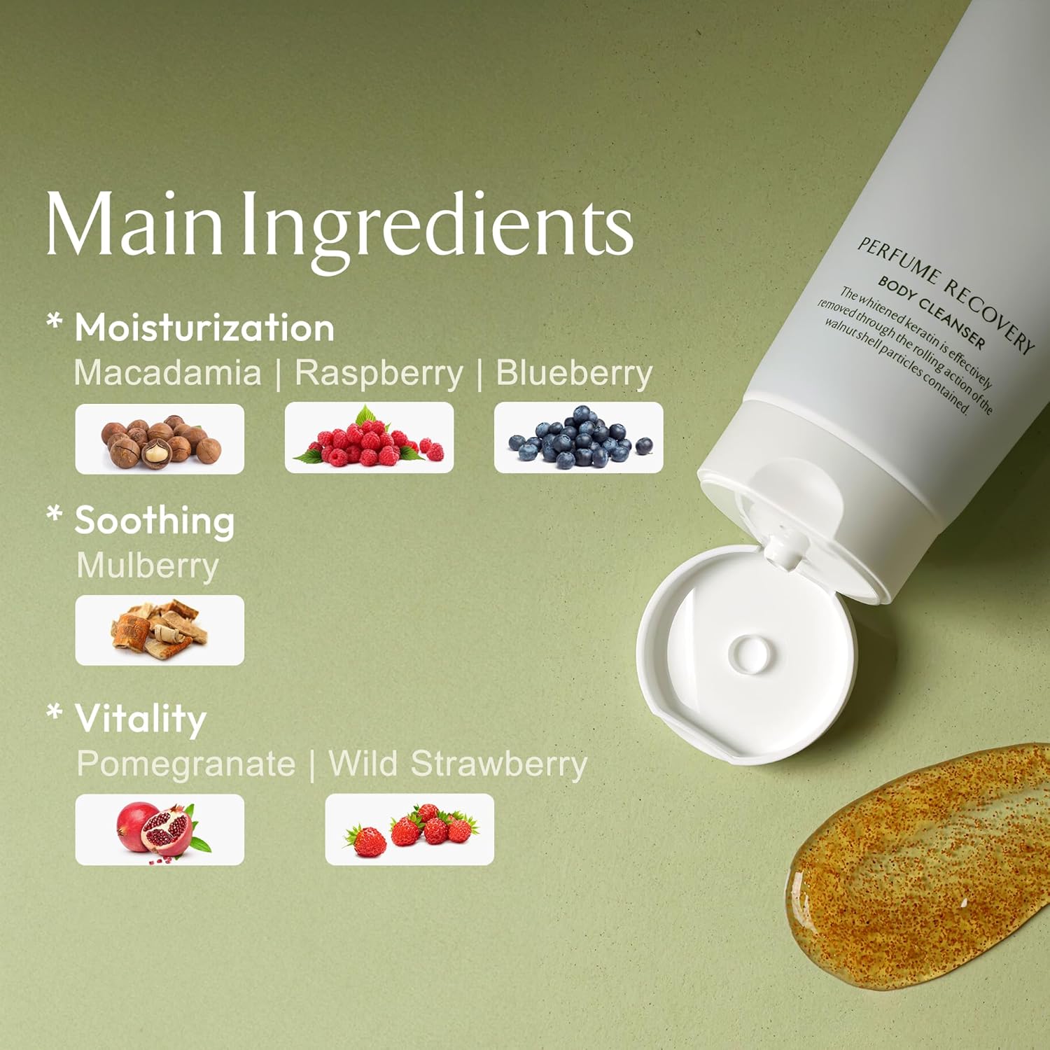 LA MUSE Perfume Recovery Body Cleanser 6.76 fl oz | Daily Gentle Exfoliating Body Wash | Moisturizing Dry & Sensitive Skin | Soften Rough & Bumpy Skin with Walnut Shell Powder | Floral Musk Scent
